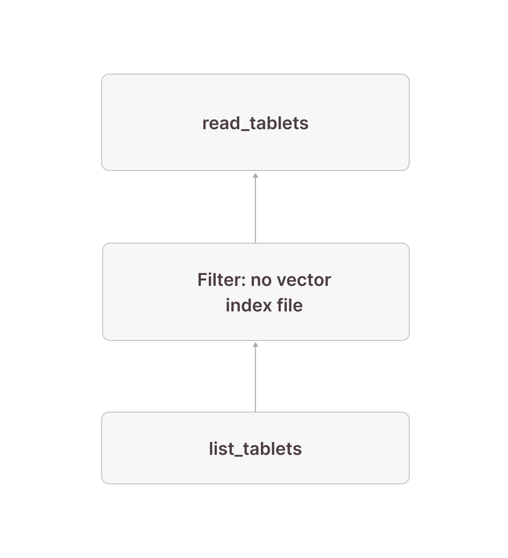 In some cases, tablets may exist without an associated vector index file, for example, when an index is created after data has already been inserted. When this happens, users can bring the table fully up to date by running VACUUM (REINDEX=TRUE), which identifies any tablets without vector index files and builds the missing index files. This operation is fully transactional: it integrates cleanly with concurrent workloads and ensures that the index state always corresponds exactly to a well-defined snapshot of the table. For an explanation of how Firebolt handles tablets without index files during searches, see the section on handling unindexed tablets.
